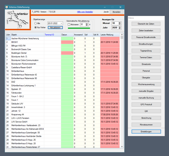 Das Zeiterfassungssystem bietet damit eine überzeugende und wirtschaftliche Lösung für Ihre individuellen Anforderungen. Diese Zeiterfassung können Sie problemlos mit unserer eigenen und speziell für Reinigungsbetriebe entwickelte Software bewerkstelligen. Unsere Software arbeitet Hand in Hand mit unserem Zeiterfassungsgeräten zusammen. Sie brauchen nur das Zeiterfassungsgerät an den vorgesehenden Arbeitsplatz zu installieren und das Gerät sendet die gesammelten Informationen zu unserem Datenbankserver. Hier wird ein Backup erstellt und sicher zum Zeiterfassungprogramm weitergeleitet. Sollten unerwartet die Daten verloren gehen, kann dank des Backups alles wieder hergestellt werden.